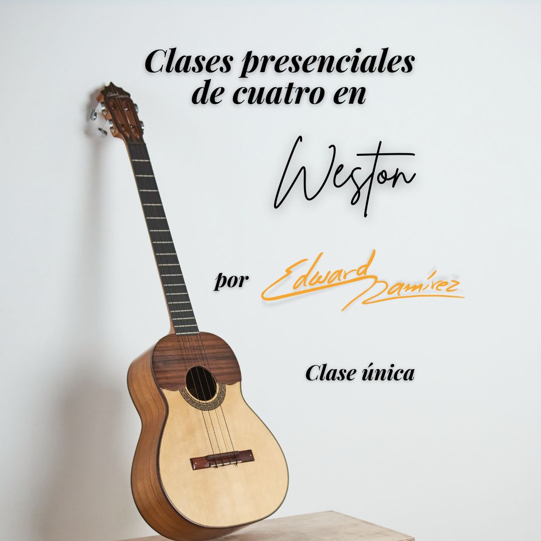 Clases presenciales de cuatro en Weston con Edward Ramírez (C4 Trío), diseñadas para acompañar tu evolución musical de forma constante, en un espacio cercano y lleno de inspiración.